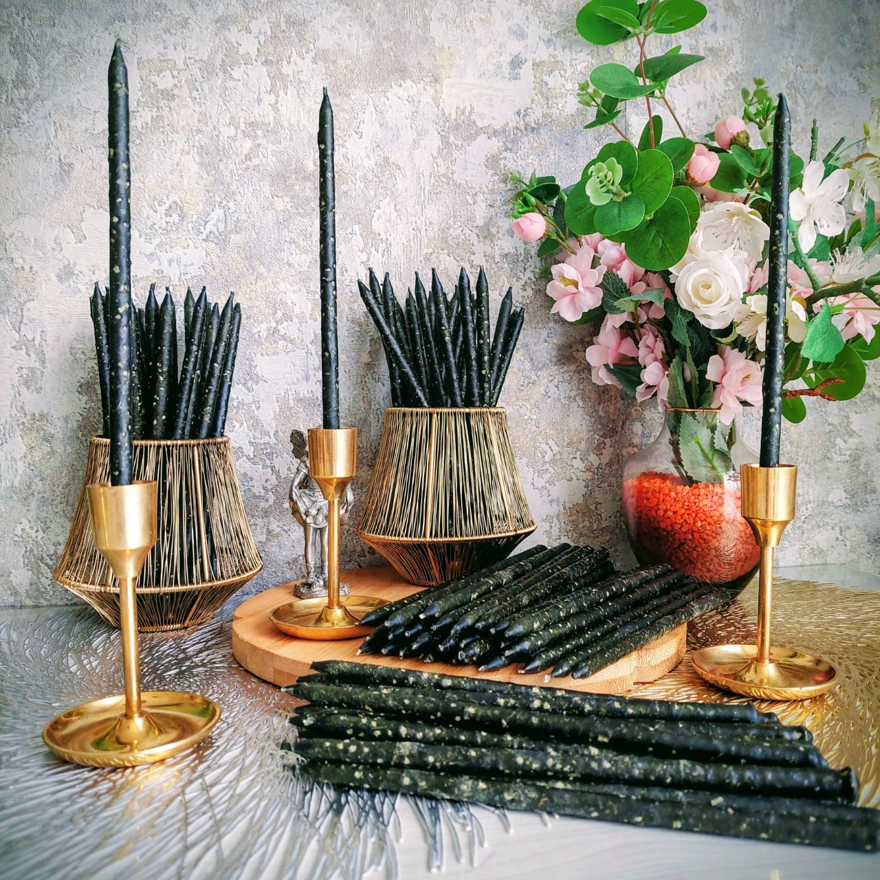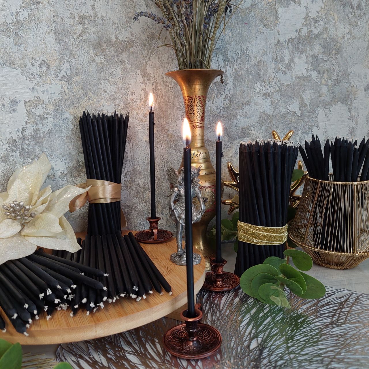 *Чёрная свеча (один фитиль) — символ защиты и верности. Один фитиль означает единый путь для двоих, когда два становятся целым. Эта свеча снимает негатив, убирает препятствия и создаёт мощный щит вокруг пары.