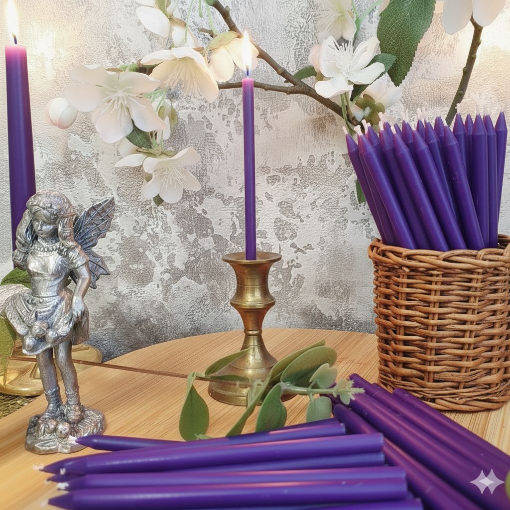 Авторская фиолетовая свеча от Феечки с ромашкой, лавандой, базиликом, шалфеем, васильком и незабудкой. Эта свеча создана для раскрытия интуиции, духовного роста и работы с коронной чакрой. Она помогает наладить связь с Высшими силами, усиливает медитацию и очищает пространство от негативной энергии.