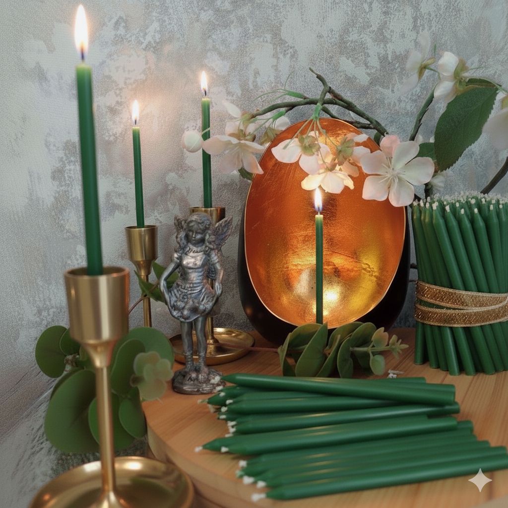 Зелёная свеча «Сила Природы» Зелёная свеча с лавандой, зверобоем и базиликом создана для гармонии, очищения и привлечения положительной энергии. Лаванда приносит умиротворение, зверобой защищает и укрепляет энергетику, базилик способствует росту внутренней силы и благополучию.